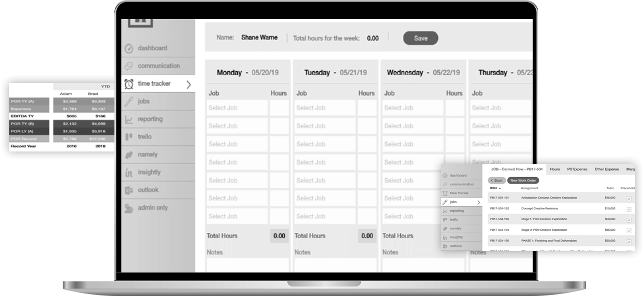 Here, users will have the privilege to add different jobs & their work order. Besides, that user can also send POR to the client as well as accounts both. In order to ensure world-class services to their customers, they need exhaustive and drill-down reporting. This system provides various reports such as profitability, margin, hours spent on the work, the amount earned or spent, etc. It also gives a clear picture for actual vs proposed business, monthly & yearly quota, monthly and LY, TY comparisons charts.